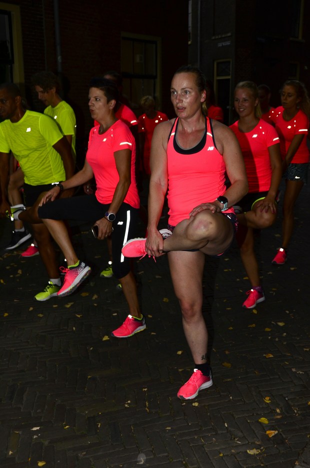 Na het eten kregen we van New Balance een hele toffe uitleg over de Vazee 2090 die we kort daarna mochten testen. Een bij passend shirtje erbij en ik was meteen verliefd. Dat ze mooi zijn is natuurlijk leuk, maar ze moeten ook lekker lopen natuurlijk. Lisanne nam ons mee iets verderop naar het park, om daar te beginnen met een warming up. Oke… dit was dus alleen nog maar opwarmen. We moesten nog beginnen….? Maar intussen zitten de schoenen al even aan mijn voeten. Ze voelen super licht aan, en daar ben ik super blij mee. Ik houd van een licht schoentje voor mijn pittige baantrainingen en de wedstrijdjes.