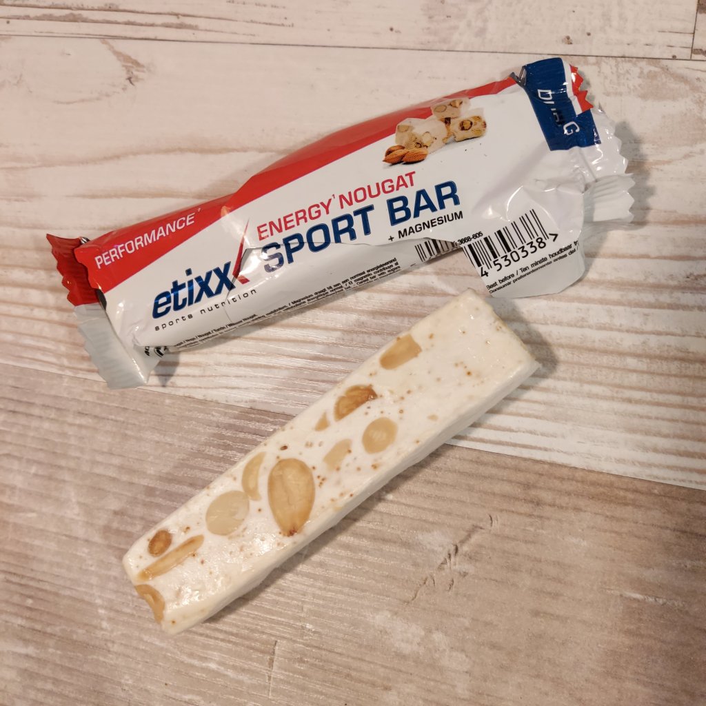 Dan heb je nog de repen van Etixx, die zijn er in verschillende varianten. Ik heb er eentje uitgekozen die ik echt heel lekker vind. De nougat sport bar! Ja ja, de echte nougat zoals je die al kent. Je snapt dat dat geen straf is om er eentje op te peuzelen. De nougat bar is een energy reep, en gebruik ik vooral veel op de fiets. Zoals ik al zei, heb ik op de fiets echt voeding nodig, en deze reep gaat dus altijd mee. Heel soms gebruik ik deze ook net voor een intensieve hardloop training, als ik net geen tijd heb om te eten. Deze nougat bar zorgt voor een langere energievoorziening. En is dus echt net zo lekker als de nougat zoals je die al kent. Deze is verrijkt met amandelen en honing, en bevat ook weer magnesium. Meer info